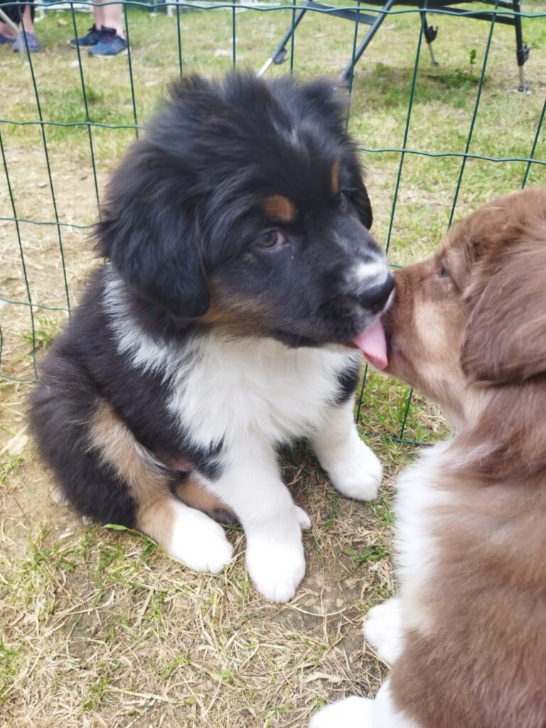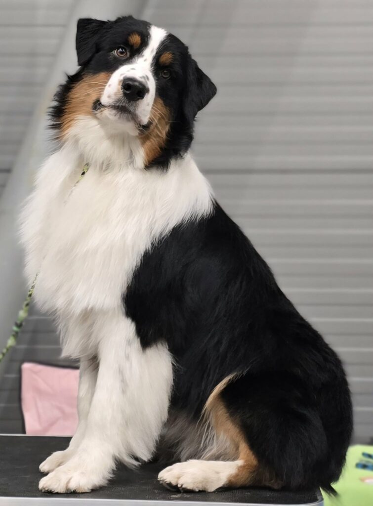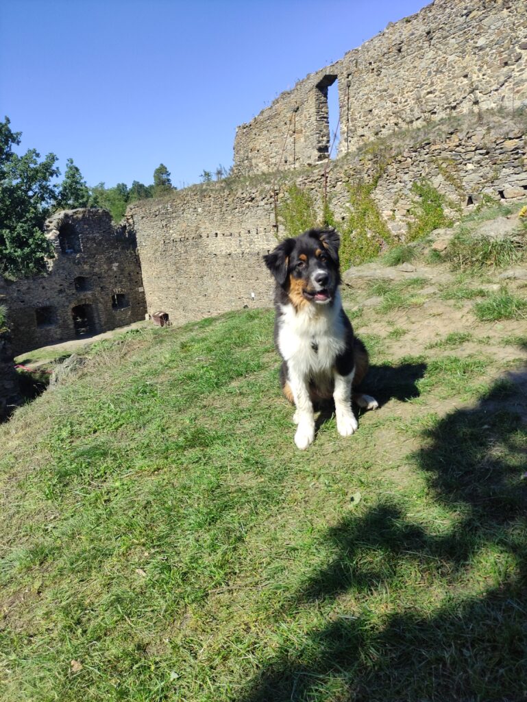 Miunka se narodila 24. 2. 2024. Je to svéhlavá holčička, která si myslí, že bude vše po jejím. Ale když se jí člověk věnuje…jen jí….je milionová a funguje na jedničku. Je sportovní typ psa, ráda běhá, skáče, miluje házecí kroužek, který je jen její. Je to taková „maminka a organizátorka“ všech. Když se jí nelíbí, co dělají ostatní psi ve smečce nebo kočičky doma, jde jim to opravdu nahlas vysvětlit. Má ráda všechna mláďátka, přijala velmi hezky naše dvě koťata, ráda se chodí koukat na naše slepičky a na výstavních trénincích je jako divá po štěňatech, která s námi v hodině trénují. Je to naše vysněná princezna, kterou jsme si moc přáli a vlastně si ji vymodlili, jelikož v jejím vrhu byla jediná merle fenka s dlouhým ocáskem. Také cestuje v pohodě a kromě výletů na výstavy a pobytů v penzionech byla s námi a s Farynkem v Chorvatsku u moře. Všechny testy (oči, klouby, genetika) má v pořádku – viz příloha.